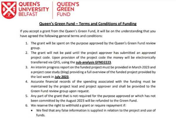 If you would like to remain updated on Queen's Green Fund, email sustainability@qub.ac.uk.
