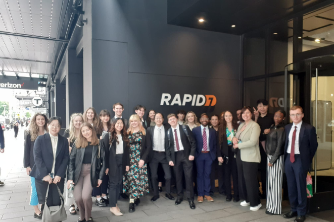 Postcard from Boston! Last year our #QUBoston23 students embraced the Queen's University Belfast global alumni community with workplace visits in Boston to: Stratadice™ Rapid7 and Rian Immigrant Center before networking with alumni at the #futureleaders conference at the University of Massachusetts Amherst, Harvard Business School and HealthBeacon organised by Laura Hamilton, President of Boston Irish Business Association. They also heard from Benjamin Stephens from the Department of Foreign Affairs, Ireland about the new J1 5-year Visa for Research and STEM.
