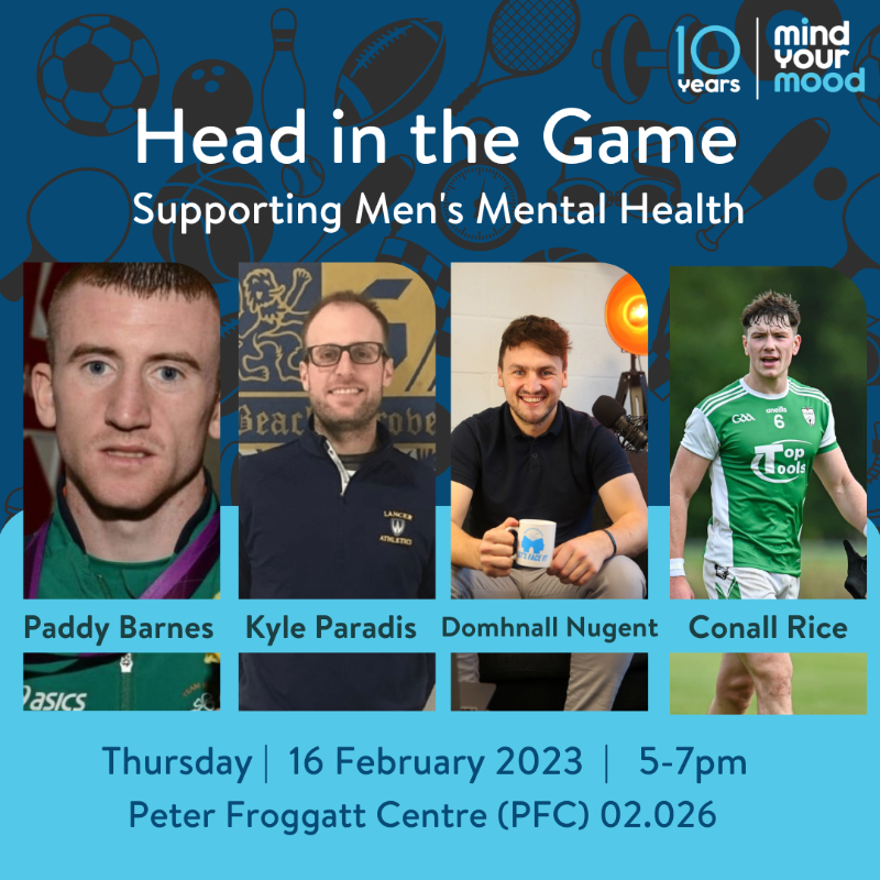 Join Mind Your Mood on Thursday 16th February from 17:00-19:00 for a panel, on Men’s Mental Health & Sport, and how the two are interlinked.