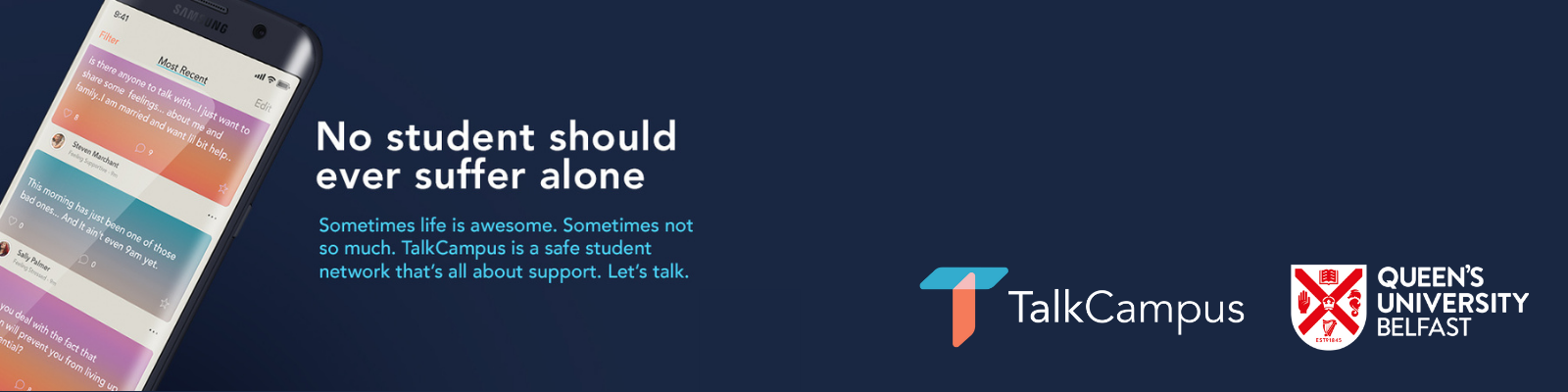 TalkCampus can be downloaded from the app stores. You can access TalkCampus using your QUB email address.