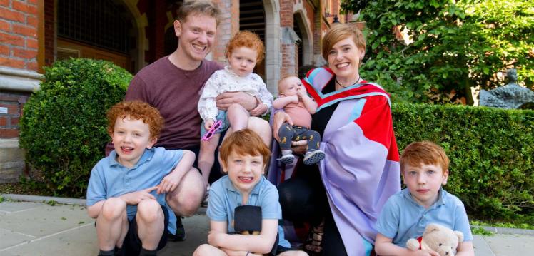 Sarah Patterson, 37, Belfast, is today graduating with a PhD in Education after a busy six years having five children, four maternity leaves, three boys during three lockdowns, two PhD supervisors and one house move.