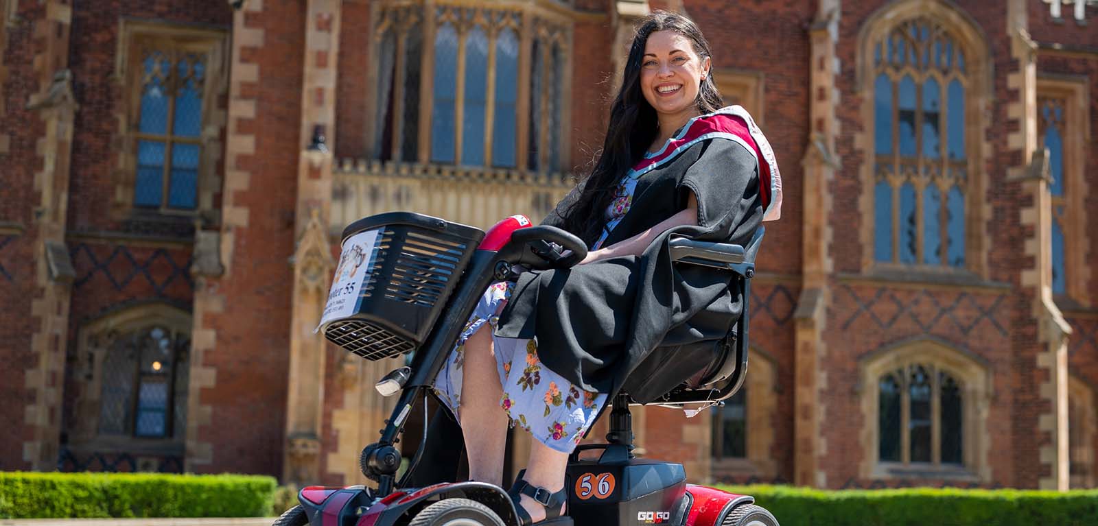 Speaking about the support she received, she commented: “The genuine empathy, drive, and willingness from the staff at Queen’s to make it possible for me to continue my studies meant so much. I received multiple one-to-one sessions with my final project supervisor to track my progress alongside my health, flexibility with deadlines, and guidance from the University’s disability service on applying for disabled students' allowance for technology to help me study.”