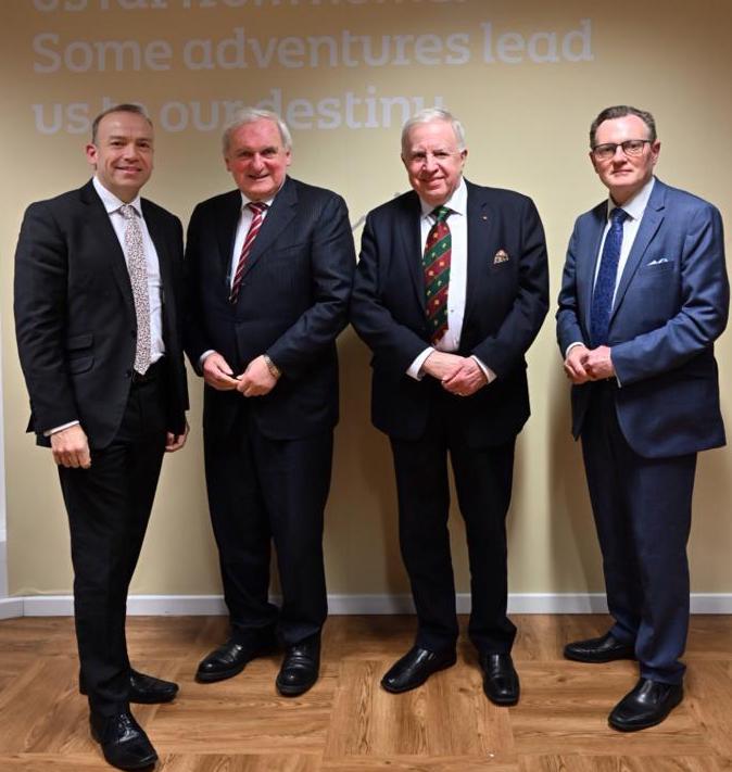 Pictured L-R are: Secretary of State for Northern Ireland Chris Heaton-Harris MP, former Taoiseach Bertie Ahern, former Secretary of State for Northern Ireland Lord Paul Murphy, and Queen’s University Vice-Chancellor Professor Ian Greer.