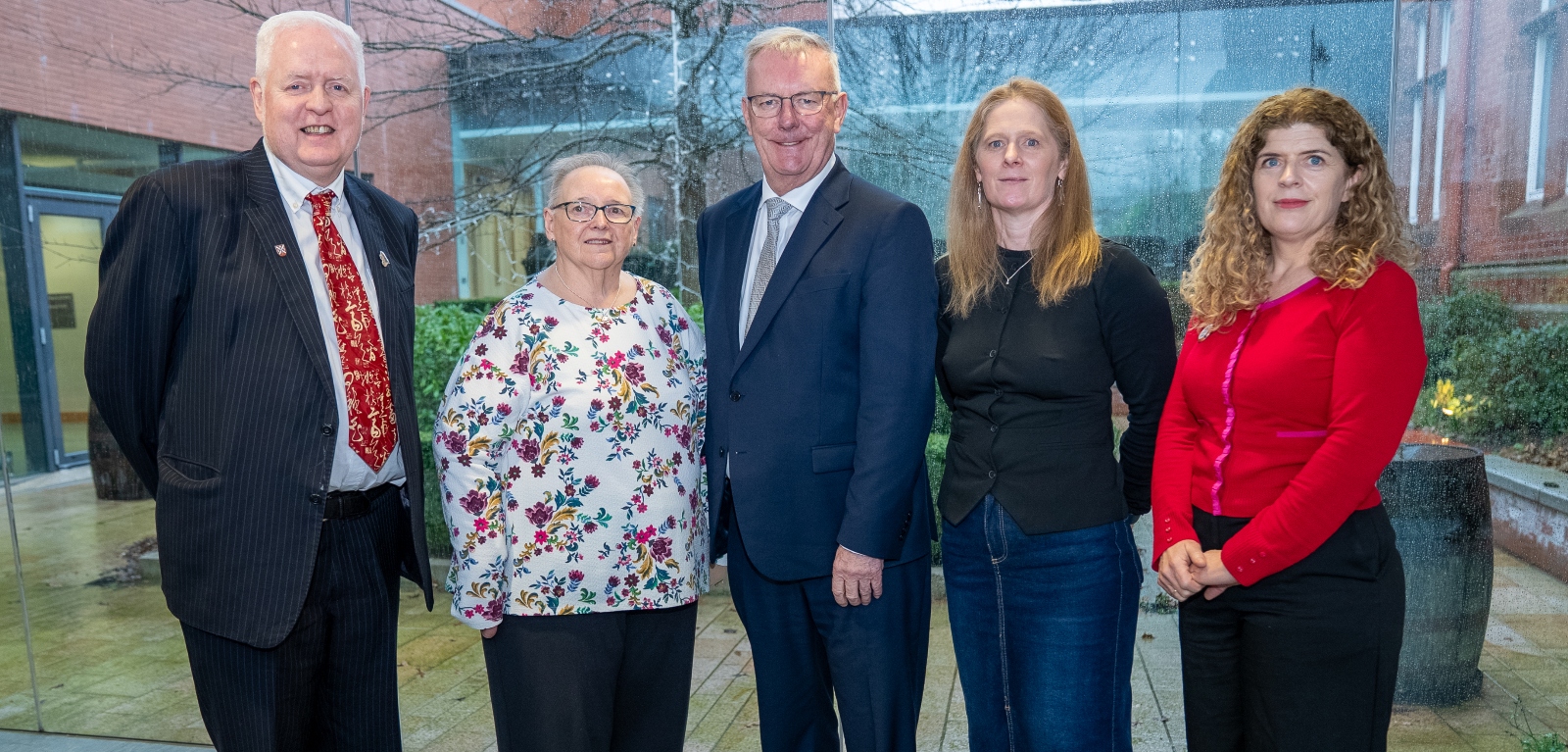 L-R are: Professor Mark Lawler, Professor of Digital Health at Queen’s University Belfast and Co-Lead of the eHealth Hub for Cancer; Margaret Grayson, Patient Advocate, Northern Ireland Cancer Research Consumer Forum (NICRCF); Minister of Health for Northern Ireland, Mike Nesbitt; Miriam Staunton, Chairperson, United Cancer Advocates Network Ireland (UCAN); and Professor Aedin Culhane, Professor of Cancer at University of Limerick and Programme Co-Lead of the eHealth Hub for Cancer Genomics.