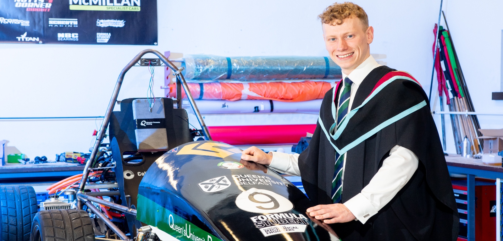 Alongside his studies and business Peter also played an integral role in Queen’s Formula Racing team – building an electric car which they will race at Silverstone race track this week – setting off the morning after he graduates. He and his teammates will compete against students from universities across the UK at the Formula Student event.