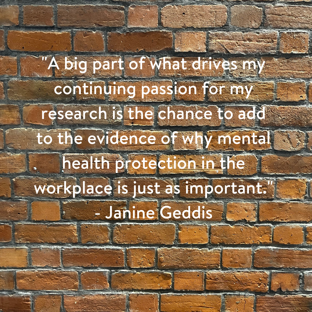 Janine: Thanks for that introduction, Wanqi. Your thesis sounds fascinating, although I can imagine even on first thought that it must bring constant challenges. In terms of my thesis, while it may seem like quite a jump from psychology to human rights law, mental health has always been an area I am interested in, and I believe that poor mental health can result when an individual's human rights are not respected. That can cover a very wide range of issues but for me, when deciding on a topic for my Master's dissertation, I wanted to look specifically at the mental health of human rights defenders for a number of reasons. They are devoted to protecting the rights of others, oftentimes facing a lot of trauma through the nature of their work, but there is very little structure in the profession that protects the mental health of those exposed to primary and secondary trauma. As I began researching, it also appeared that human rights defenders were also facing the same organisational stressors as many other professions, and nobody was researching this. Ironically, in the scholarship that has been published, nobody referenced the right to health. My research aims to explore more fully the operational and organisational stressors impacting the mental health of human rights defenders, while reviewing international human rights law and domestic legislation to assess whether it is adequately upholding the right to health which is a key human right. There are few people who have not experienced stress at work but while there are extensive health and safety protections that prevent employers from permitting physically unsafe working environments, the same is not true of mental health and I guess a big part of what drives my continuing passion in this area is the chance to add to the evidence of why mental health protection in the workplace is just as important.