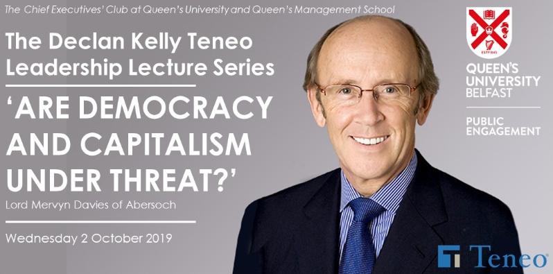 The Chief Executives' Club at Queen's University and Queen's Management School present the Declan Kelly Leadership Lecture with Lord Mervyn Davies of Abersoch.