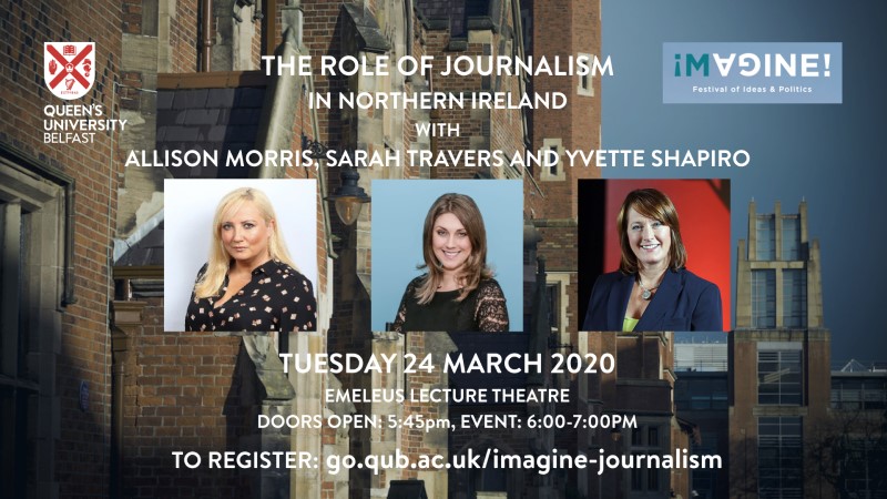 Prominent journalists Allison Morris, Sarah Travers and Yvette Shapiro will address the role of journalism in Northern Ireland at this 'Imagine Belfast' event.