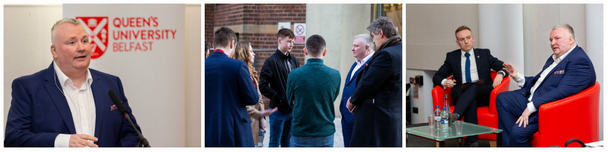 His talk, entitled “Enhancing the democratic debate in the era of fake news” reflected on his early determination to make the breakthrough into broadcast journalism, and revealed that his roots in a working class community near the Shankill Road informed his drive to create radio programmes with a social impact.
