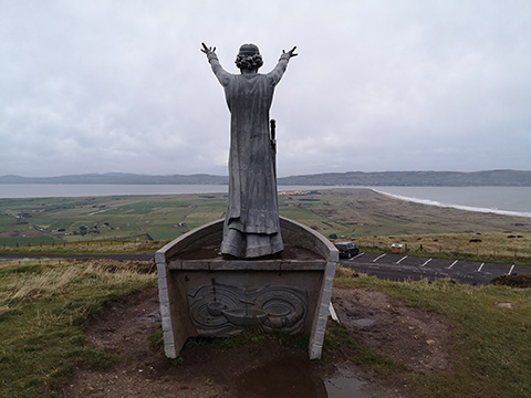 We started at the beach in Downhill. Even though it was much too cold to relax, the beach was a great way to view and learn about the Mussenden Temple which hangs on a cliff above. It was built in 1785 and is now run by the National Trust if you wanted to get a closer look. We instead opted to carry on towards Gortmore to see the statue of the sea god, Manannan Mac Lir.