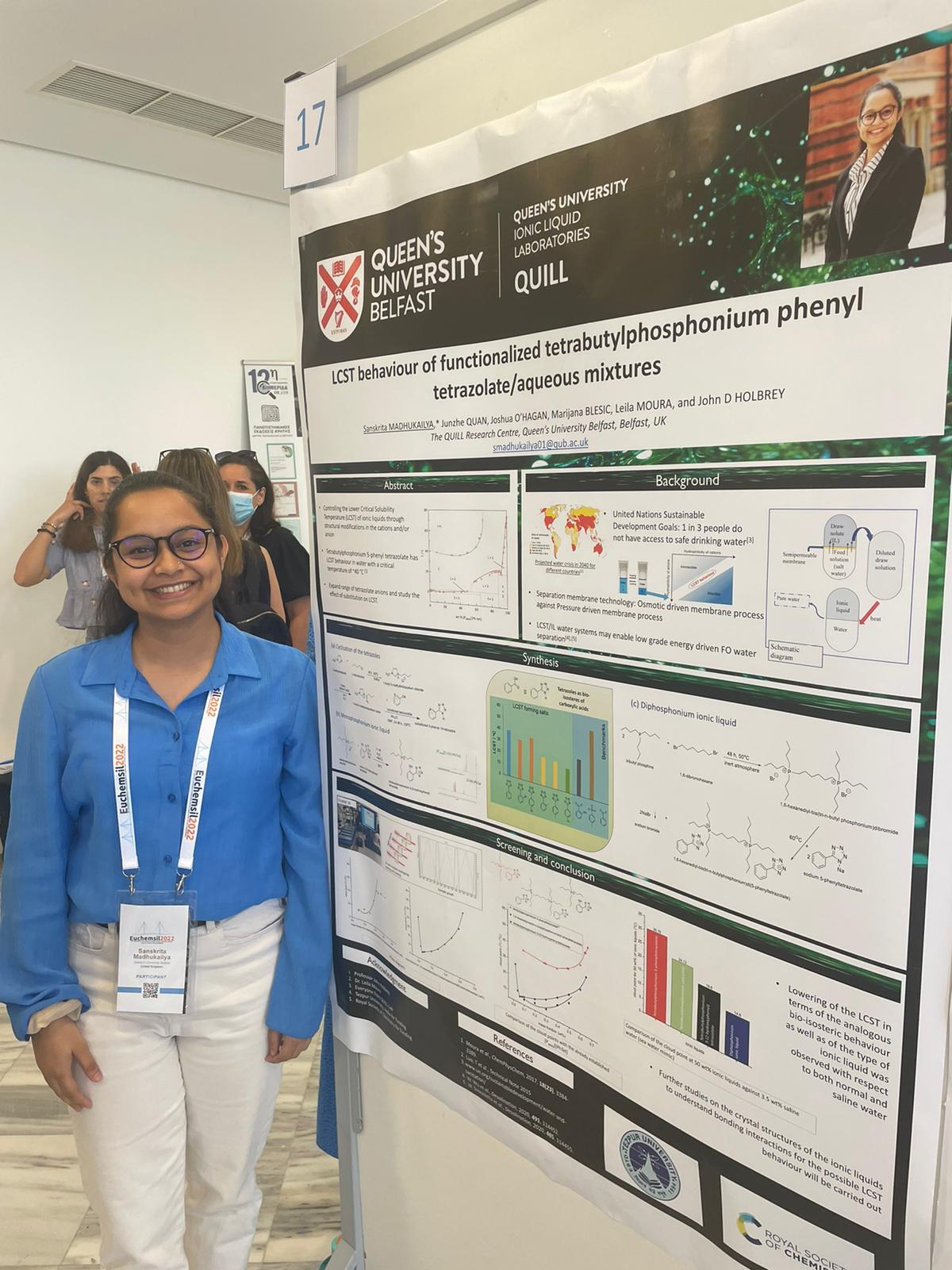 QUILL researchers have just returned from the 28th EUCHEM conference on molten salts and ionic liquids (EUCHEMSIL 2022) in Patras, Greece - The conference covered fundamental aspects, applied research and industrial applications of ionic media over a broad temperature range.