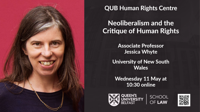 QUB Human Rights Centre is delighted to be hosting Associate Professor Jessica Whyte (University of New South Wales) for a Guest Seminar on "Neoliberalism and the Critique of Human Rights"