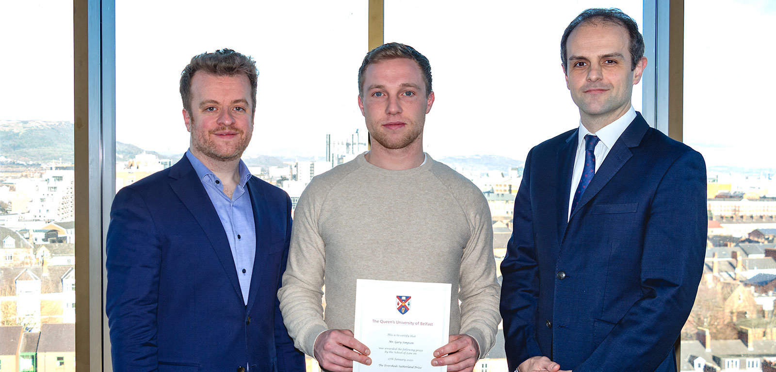 Matthew Howse, Partner, Belfast Office, said, “We are delighted to support the Eversheds Sutherland Prize. Eversheds Sutherland is a law firm that is connected globally but also committed locally.