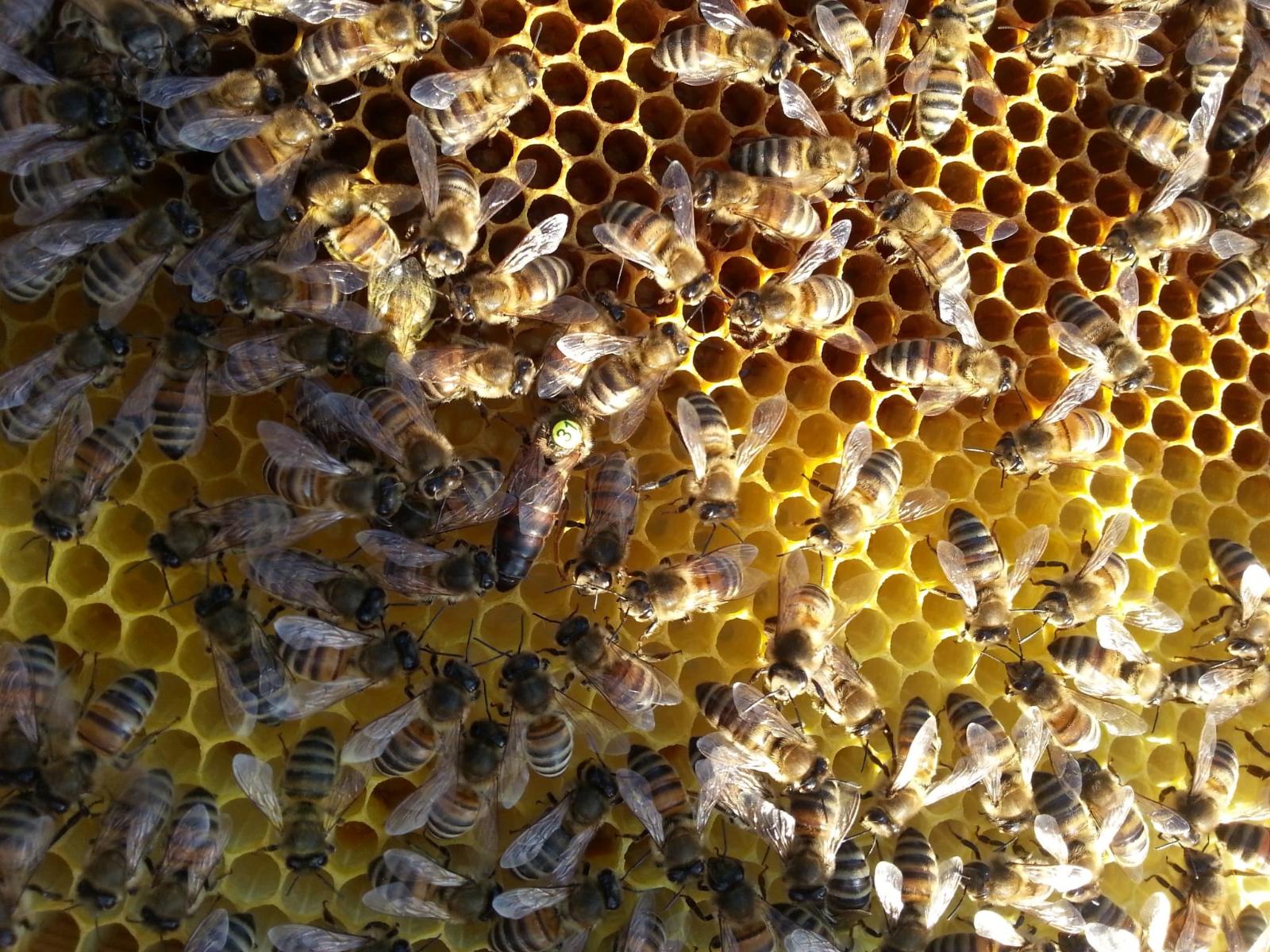 Now it is able to defend itself against danger. From the 13th to the 17th day, the bee becomes a "construction worker". Together with other bees, they repair broken cells, cover honey or larvae cells and build new combs. During this work, she transforms nectar into honey. Until the 21st day, she now becomes a guard bee. She keeps watch in front of the hive and makes sure that only the bees that are allowed to enter come in. In addition, she flies over the surrounding area to get an overview of the nearby surroundings.