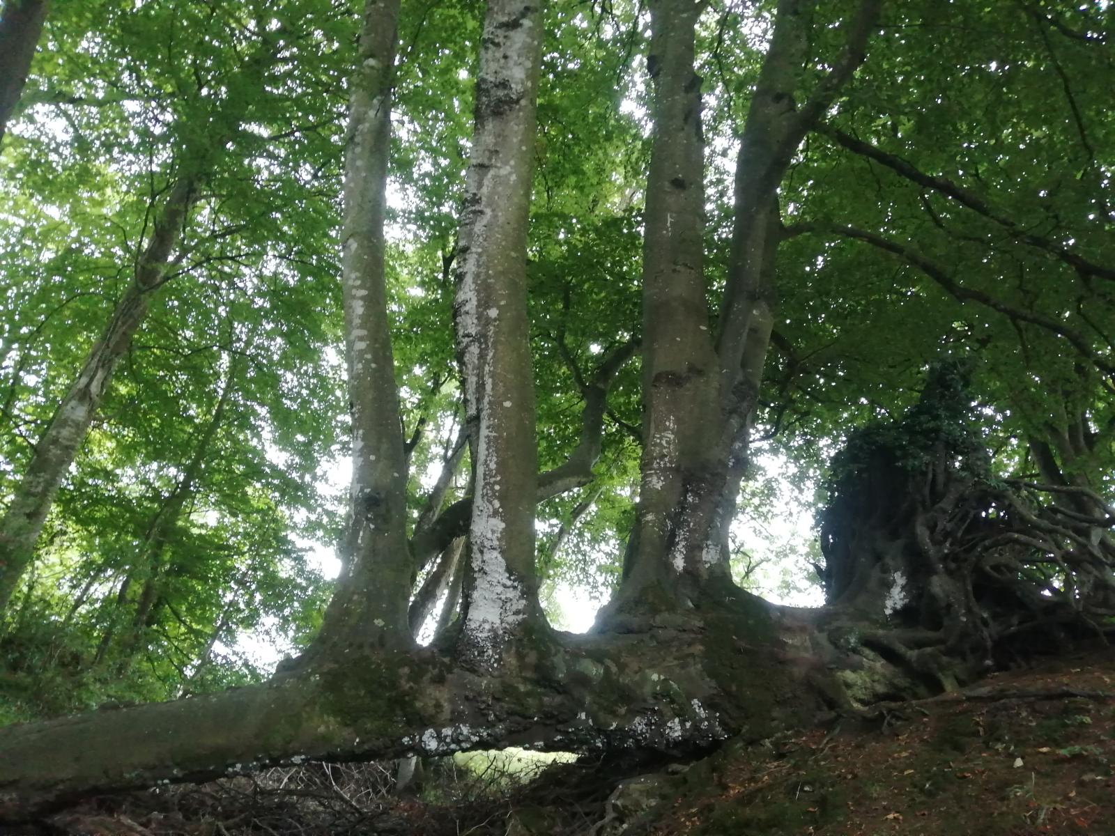 This picture is of a very unusual looking tree! Its epitomes the triumph of life over adversity! This beech tree obviously succumbed to a strong wind and its precarious position on a slope resulted in its horizontal position.