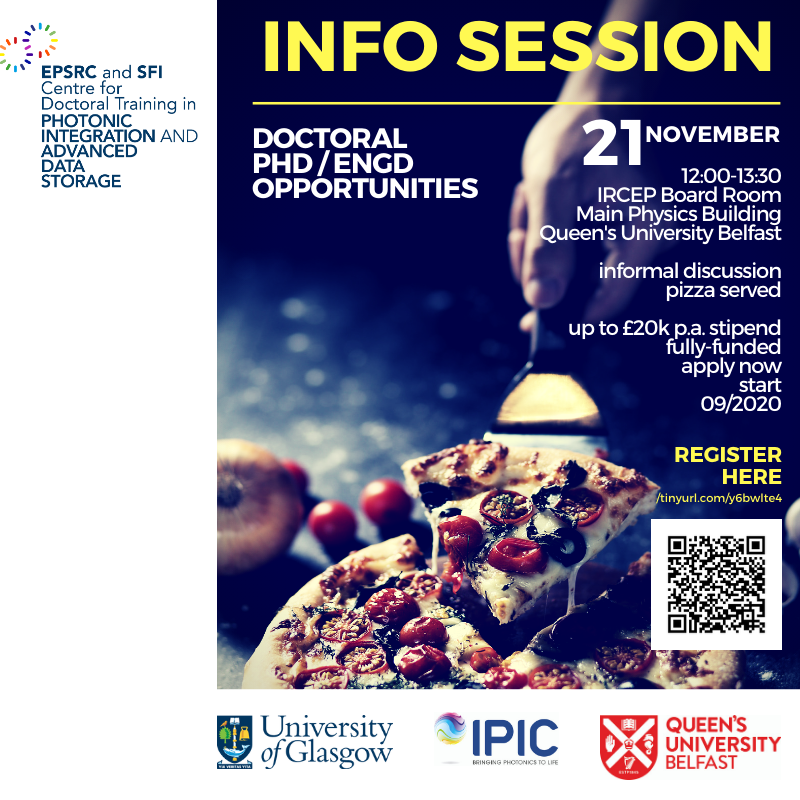 We are hosting an informal information session (with pizza) 12:00 – 13:30 Thursday 21 November, IRCEP Board Room, Ground level, Main Physics Building, QUB.