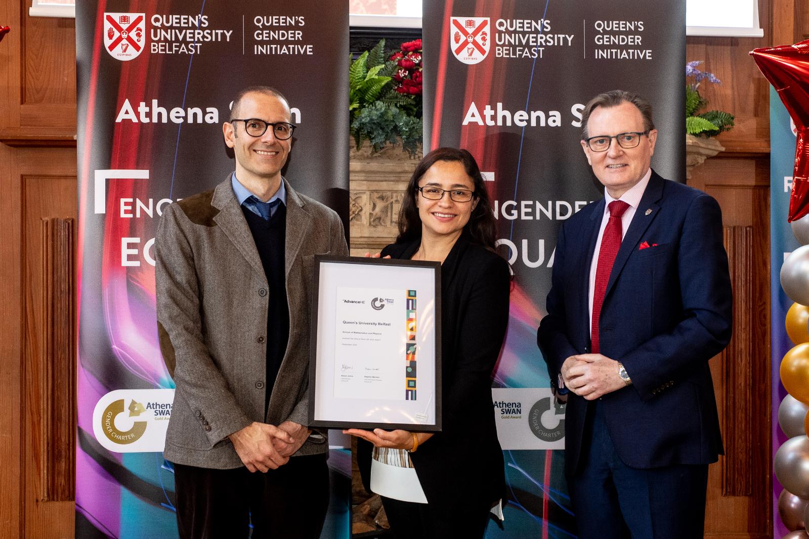 A campus-wide celebration was held on 5 December to present those Athena SWAN awards earned across the University during the last few years. In 2020, the School of Maths and Physics successfully renewed our Athena SWAN Silver Award. This award was presented to Dr Miryam Arredondo-Arechavala and Dr Gabriele De Chiara who led the School's renewal application and diversity, inclusion, and equity efforts as previous chairs of the Gender Equality Committee (GEC). Congratulations to all those involved with the renewal application.