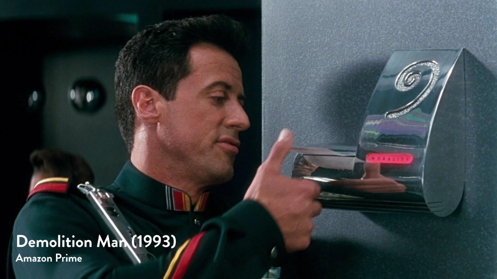 We would be fined 1 credit for a violation of the movie recommendation statue for not mentioning this one, featuring the cinematic trifecta of Stallone, Snipes and Taco Bell! It’s DEMOLITION MAN (1993):
