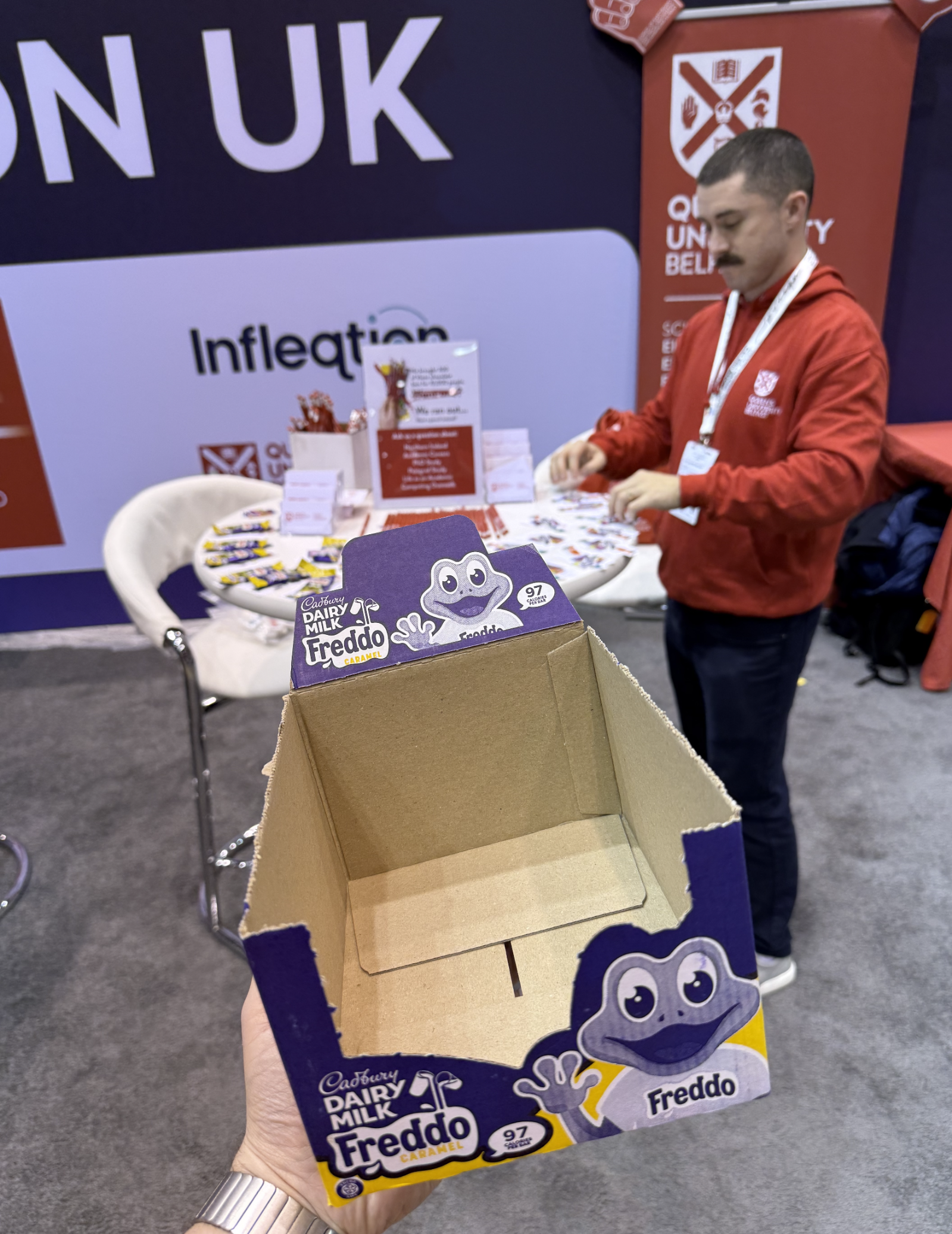 To share a little something of home, we brought along 300 caramel Freddos, which quickly became a talking point in the conference. We are definitely biased, but it was the best chocolate in North America. Alongside the chocolate, we handed out stickers featuring artwork by local artists Jacky Sheridan and David J. McMillan, whose larger form artworks are proudly on display in our Ashby Building in Belfast. These small touches helped us stand out and created a fun way to connect with people from all over the world.