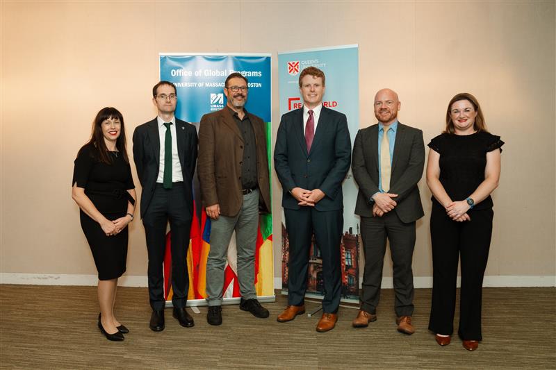 (L-R) Susan McCleary (QUB’s USA Partnerships and Events Officer), Dr. Peter McLoughlin (HAPP), Prof. Dominic Bryan (HAPP), Joe Kennedy III (Special Envoy to Northern Ireland for Economic Affairs), Prof. Richard Collins (AHSS Faculty Dean for Internationalisation) and Dr. Cheryl Lawther (QUB Law School