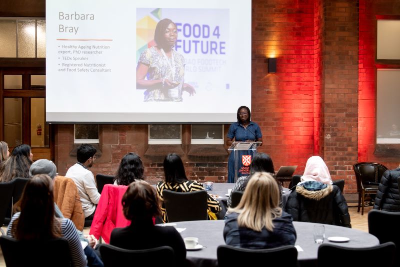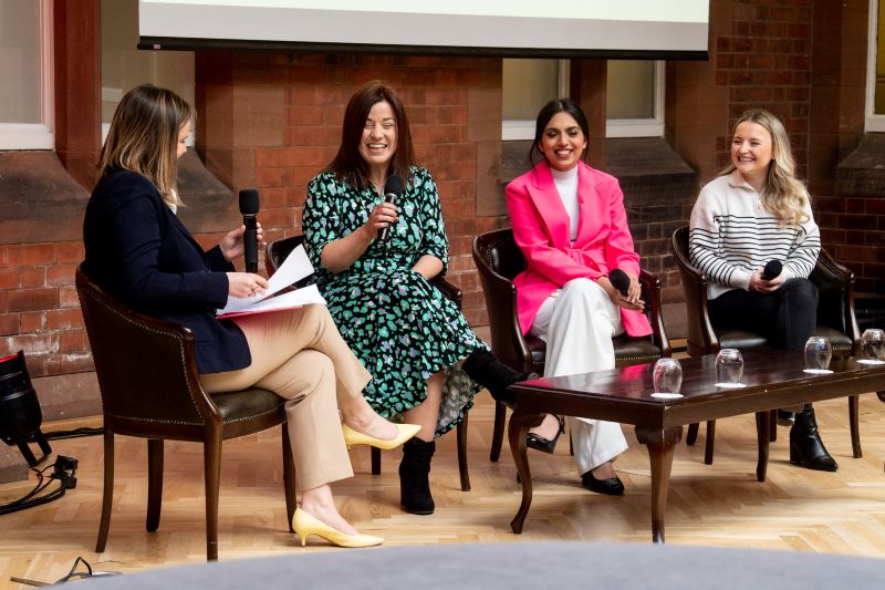 Out of My Comfort Zone IWD 23 Julie McCandless, Director of Business Engagement, Queen's Business School; Claire Brannigan, co-founder of Skinakin Ltd; Pragya Sharma, founder of Gran Lab; Emma Corbett; CEO of Insurin - Image Gallery - (2203076)