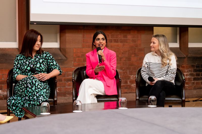 Out of My Comfort Zone IWD 23 Claire Brannigan, co-founder of Skinakin Ltd; Pragya Sharma, founder of Gran Lab; Emma Corbett, CEO of Insurin - Image Gallery - (2203074)