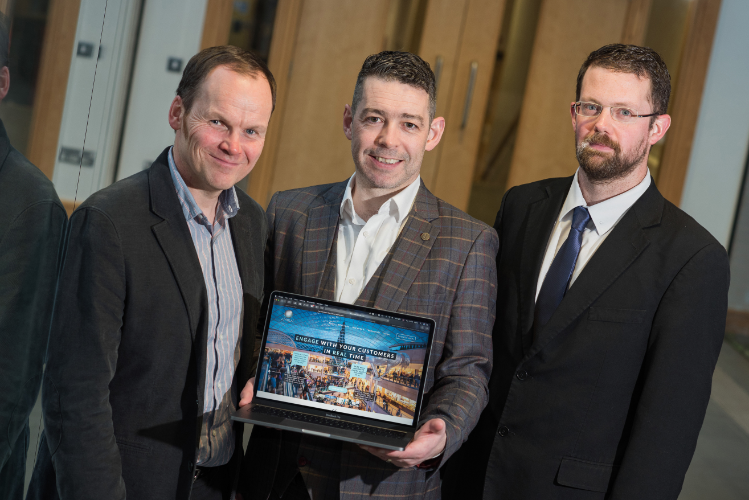 Pictured L-R are: Dr Barry Quinn, from Queen's Management School; Peter McCaul, CEO of Pearlai; and Dr Byron Graham, from Queen's Management School.