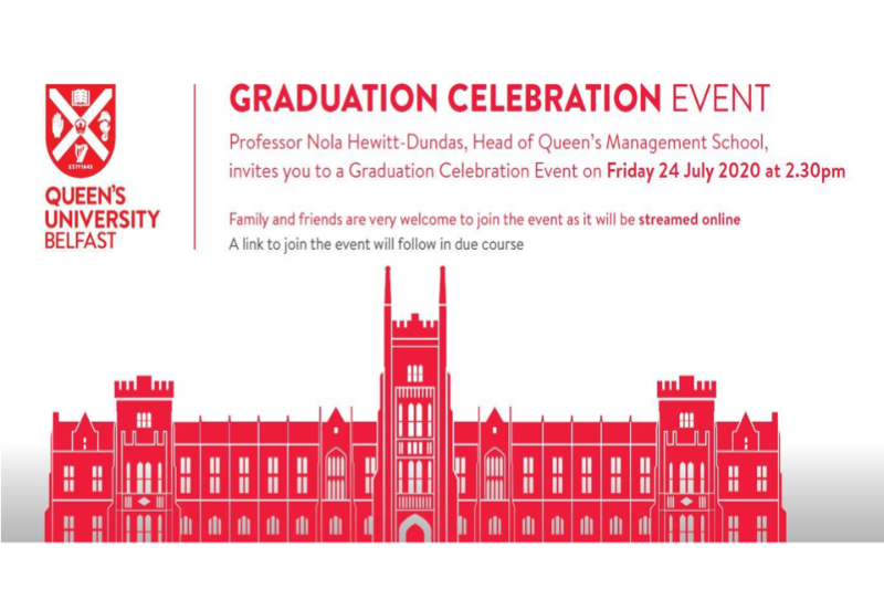 Professor Nola Hewitt-Dundas, head of Queen's Management School, invites you to a Graduation Celebration Event on Friday 24th July 2020 at 2:30pm.