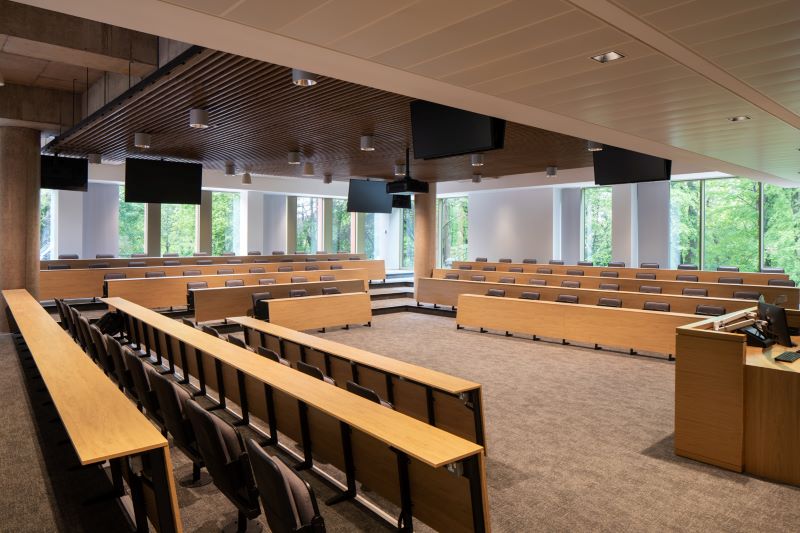 The unique spaces have been designed to benefit students with a modern digital infrastructure to interface with media lecture capture, TED Talk provision, collaborative breakout sessions and two-way audio-video communication.