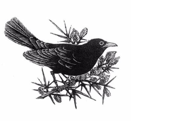 "In October 2003, on my first day as director of the Seamus Heaney Centre, I was walking up the little path to the School of English at 2 University Square when I spied a blackbird scuffling around in the shrubbery. I thought of the Early Irish poem known in English as ‘The Blackbird of Belfast Lough’. It looks like a typical piece of marginalia in its brevity and clarity, an example of how Irish scribes would sometimes so divert themselves from the copying of ecclesiastical texts. For all its apparent spontaneity, it is cunningly worked, written in the complex metre know as snám súad, literally ‘the swimming of the sages’, or ‘poetic floating’. I was familiar with Seamus Heaney’s translation, and I thought I might float my own attempt at it. And the poem suggested a fitting emblem for the Centre. Hence our logo, the elegantly spiky wood engraving of a blackbird singing from a ‘whin’, or gorse bush, by the artist Jeffrey Morgan.