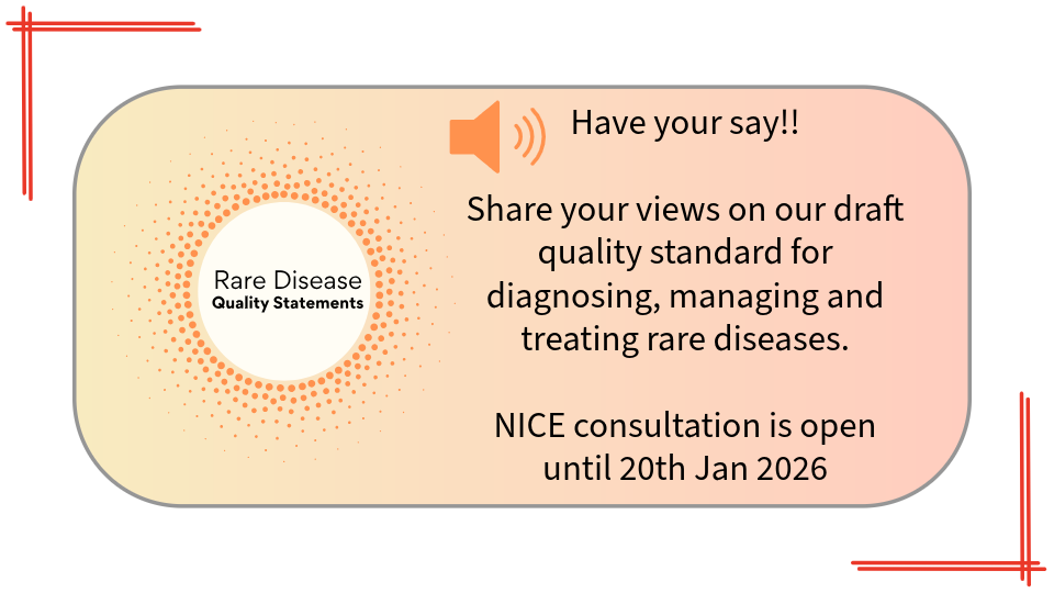 Our rare disease quality statements project, led by Sue Farrington https://rarediseaseqs.org/, co-developed with rare disease stakeholders a set of quality statements for rare disease, which we hope will be used by relevant authorities across the four nations as the basis for a quality standard for rare disease. We developed, through collaboration across the rare disease community, a set of statements which clearly set out what high-quality, sustainable care, treatment and management look like for rare diseases.