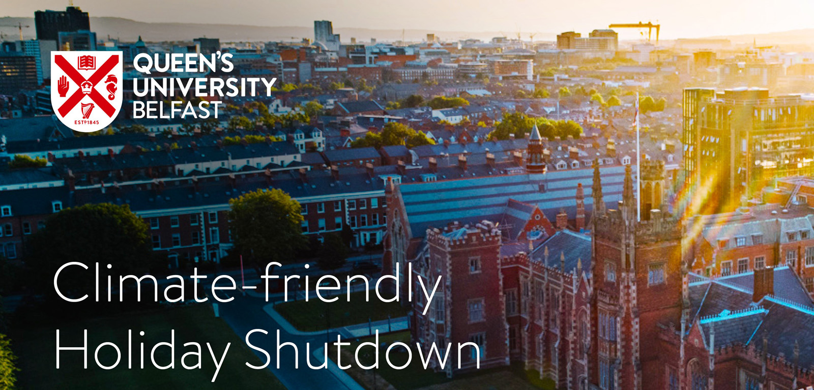 Queen's has launched a new 'Climate-friendly Holiday Shutdown' campaign that recognises that the impact of small changes and actions by a large number of us working together as a staff community can make a big difference.