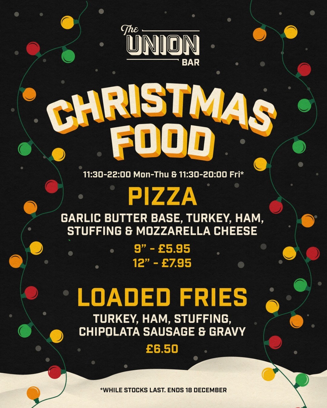 Due to popular demand, the Union Bar at One Elmwood is now serving seasonal favourites - including its much-loved Christmas Pizza and Festive Loaded Fries - alongside the regular menu*, giving staff an even wider range of options to enjoy.