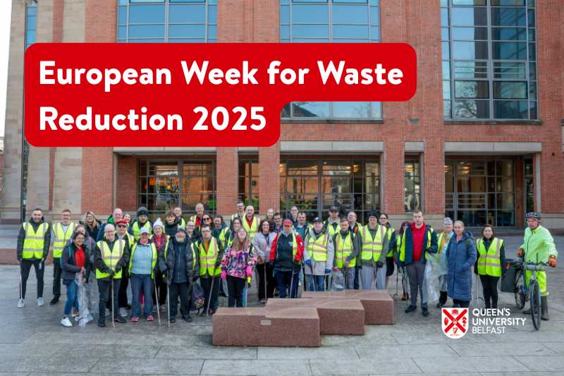 Queen's is taking part in European Week for Waste Reduction with a variety of sustainable events for staff and students happening across campus from 24 November to 27 November, focused on reducing consumption, reusing products and materials, and recycling waste.