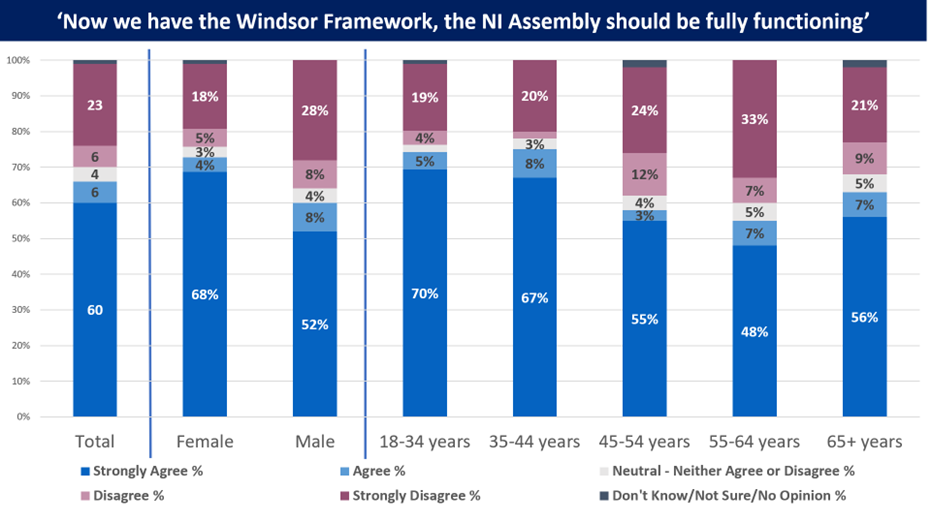 Figure 3. The Northern Ireland Assembly should be fully functioning (by gender, age)