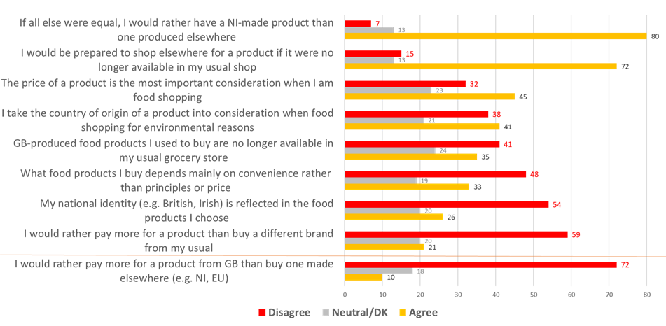 The overwhelming majority (80%) agreed that, if all else were equal, they would prefer to have a Northern Ireland-made product to one produced elsewhere.