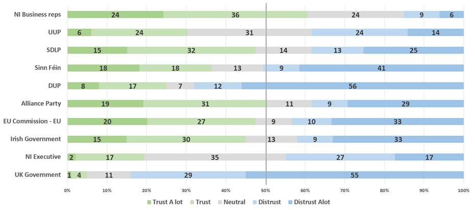 Figure 6. Levels of trust in/distrust of actors to manage the interests of Northern Ireland with respect to the Protocol