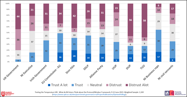 Figure 5. Levels of trust in/distrust of actors to manage the interests of Northern Ireland with respect to the Protocol/Windsor Framework