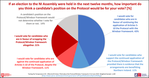 - A significant minority of voters in Northern Ireland remain opposed to the Protocol despite the Windsor Framework. Just over a fifth (21%) will only vote for candidates in the next Northern Ireland Assembly election who are in favour of scrapping the Protocol/Windsor Framework.