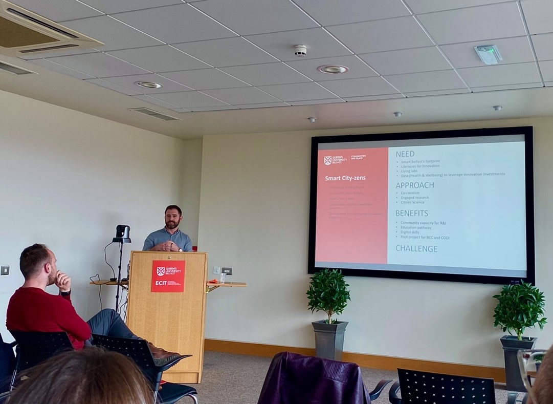 On April 28th, 2023, Ciarán Hargey (Market Development Association), Hamza Shakeel (ECIT), Gareth Robinson, and Chloe Carragher (QCAP) met with key members of QUB’s Global Innovation Institute (GII) to launch their latest collaborative project - Smart City-zens.
