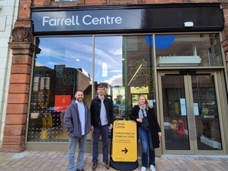 QCAP contributes to i3o’s examination of how communities and local residents engage with and benefit from innovation districts. The visit, which also included our colleague Kara Bailie from the Belfast Region City Deal, started with a meeting with John Seager, Estates Director of the Newcastle Helix. The Newcastle Helix is an Urban Innovation district that co-locates private companies, university buildings, housing, and a district energy centre all in the same area in order to advance a collaborative, cross-sectoral innovation agenda in the city. Collaborations occur between university researchers and the companies which have their offices in the Helix. A large amount of the office space is also utilised by SMEs. John Seager talked through what the district has brought to the area, including ongoing challenges and the process of balancing competing needs of the various groups who use the Helix space. It was interesting to hear that the growth of the Helix’s in future phases will include different social infrastructures and incorporate housing. This raises lots of questions for the Helix’s partnership team based at the ‘Key’ about how to connect these developments with the needs, priorities, and lives of the communities currently on its periphery.